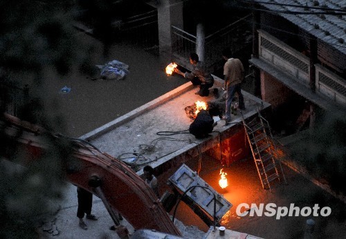 8月9日晚,甘肅舟曲泥石流災區,民眾在洪水經(jīng)過(guò)的道橋上祭奠親人。 中新社發(fā) 廖攀 攝