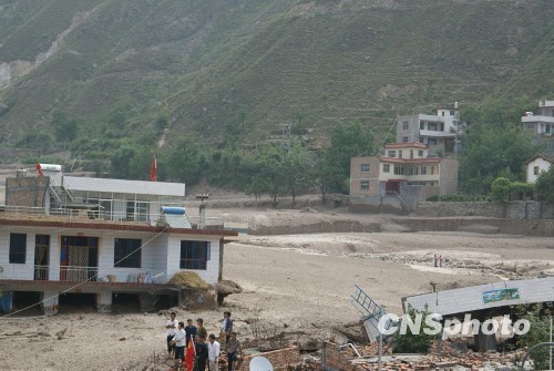 8月8日凌晨,甘肅省舟曲縣因強降雨引發(fā)滑坡泥石流,造成重大人員傷亡,電力、交通、通訊中斷。目前,遇難人數上升至127人,國家減災委、民政部將國家救災應急響應等級提升至二級。武警部隊迅速調集武警甘肅總隊和駐甘肅、四川森林、水電、交通部隊共2100余名官兵趕赴災區,展開(kāi)生命大救援。圖為災難現場(chǎng)。 中新社發(fā) 郭海涌、師軍寧 攝