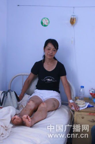 仍在縣醫院吊水的馮青林妻子谷俊花
