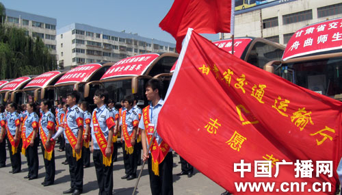 甘肅省交通部門(mén)組織的志愿者整裝待發(fā)
