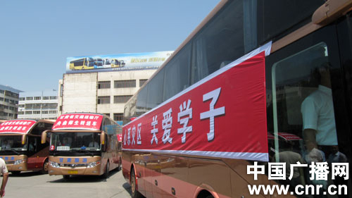 首批26輛大客車(chē)駛出車(chē)站前往舟曲