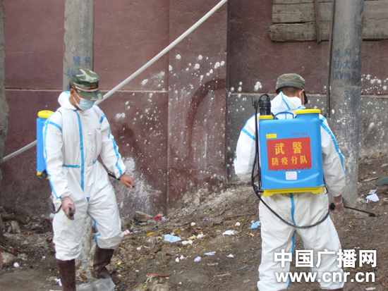 圖為武警甘肅總隊醫療隊每天消殺防疫