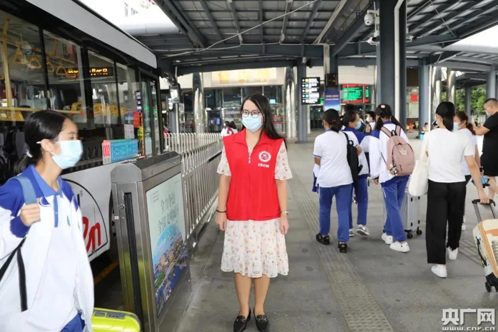 志愿服務(wù)中的張藝。(央廣網(wǎng)發(fā) 通訊員供圖)