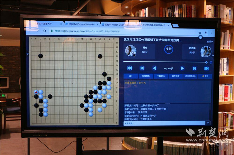 荊楚網(wǎng)客戶(hù)端—荊楚網(wǎng)消息(記者 孫永軍 通訊員 鄭棪方)北京時(shí)間1月30日晚8點(diǎn)30分,第一屆武漢市江漢區圍棋協(xié)會(huì )vs英國諾丁漢大學(xué)圍棋社對抗賽在“弈客圍棋”網(wǎng)絡(luò )平臺舉行。江漢區圍棋協(xié)會(huì )(以下簡(jiǎn)稱(chēng)“江漢”)和諾丁漢大學(xué)圍棋社(以下簡(jiǎn)稱(chēng)“諾大”)均成立于2020年,均因疫情未能舉辦傳統線(xiàn)下比賽和活動(dòng)。