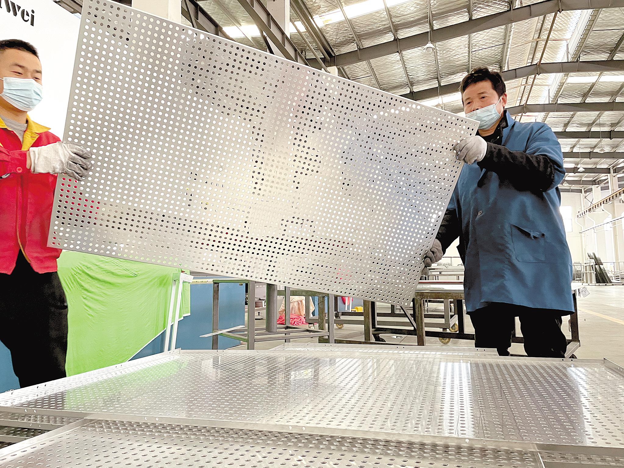 湖北中港金屬制造有限公司車(chē)間工人正在趕訂單。