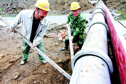 12月1日,施工人員在房縣化龍堰鎮高川段安裝連接集鎮污水處理廠(chǎng)的主管網(wǎng)。房縣建設鄉村污水處理廠(chǎng),綜合治理黑臭水體。目前,房縣建成村級生活污水處理設施100多座,129個(gè)村生活污水處理率達到80%以上,還有15個(gè)鄉鎮生活污水處理廠(chǎng)新建項目、5個(gè)鄉鎮污水處理提標升級項目正在加緊施工,預計到今年底可全面建成通水,為城鄉河流水環(huán)境再提級達標提供保障。