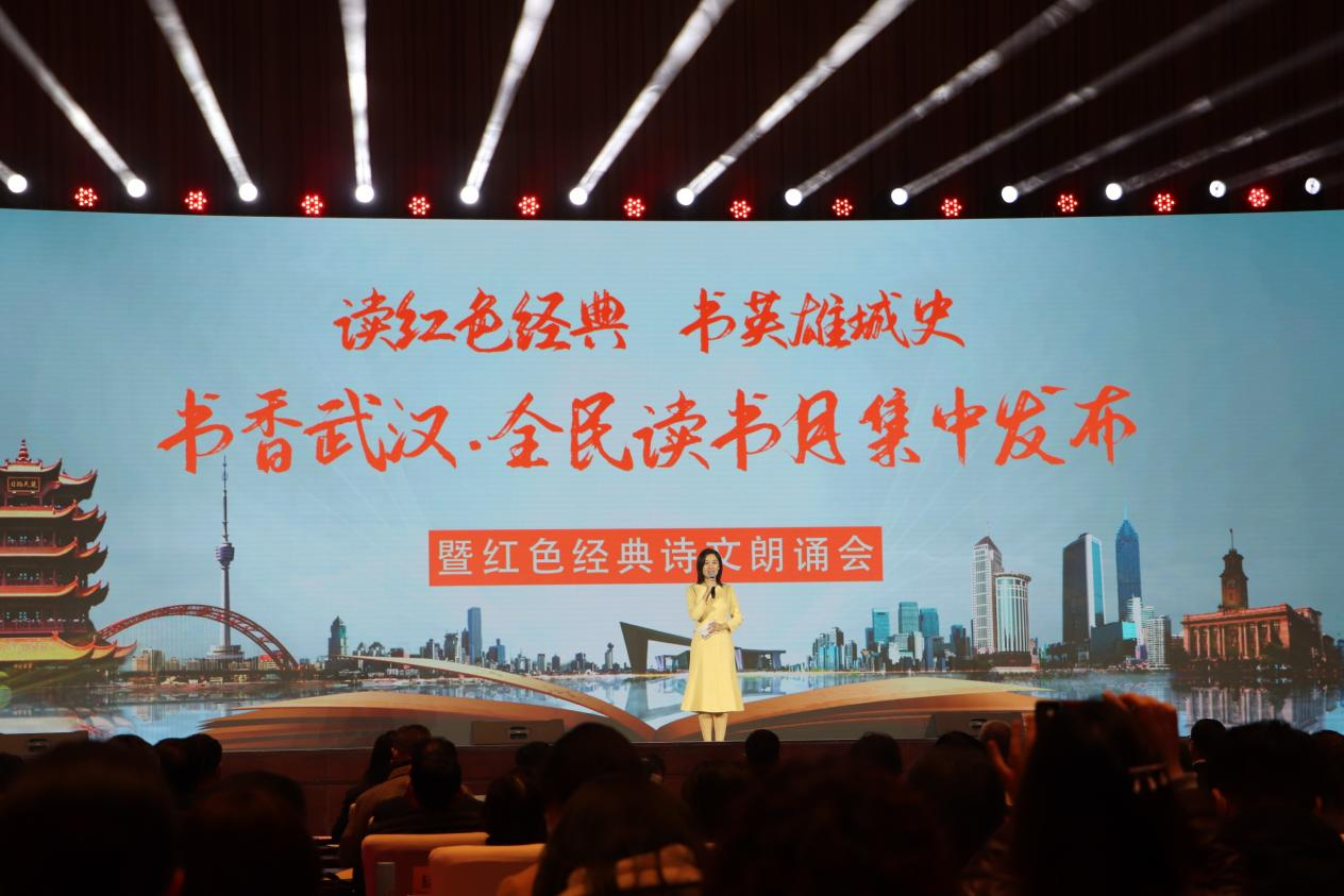 央廣網(wǎng)武漢4月9日消息(實(shí)習記者李小雪 通訊員 高文君)4月8日,由武漢市委市政府倡導、武漢市委宣傳部指導、武漢市全民閱讀活動(dòng)指導委員會(huì )主辦、武漢出版集團總承辦的“讀紅色經(jīng)典 書(shū)英雄城史”書(shū)香武漢·全民讀書(shū)月活動(dòng)發(fā)布會(huì )在武漢會(huì )議中心舉行。大會(huì )不僅發(fā)布了2021年武漢市全民閱讀促進(jìn)會(huì )推薦武漢全民閱讀的50種優(yōu)質(zhì)圖書(shū)清單,還為現場(chǎng)觀(guān)眾獻上了一場(chǎng)詩(shī)歌朗誦“盛宴”。