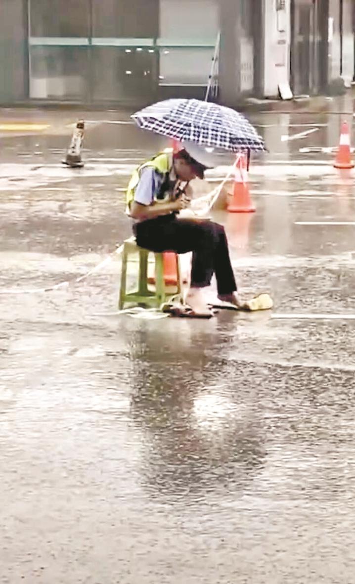 楚天都市報訊(記者陳俊 通訊員文方舉)大雨中,交通輔警坐在路中央吃盒飯,光腳踩在膠靴上。一手拿筷子,一手撐雨傘,還不時(shí)抬頭揮手勸返車(chē)輛。這幾天,人民日報轉發(fā)的一則視頻在網(wǎng)上很火,網(wǎng)友們紛紛留言表示被感動(dòng)。記者昨日了解到,吃盒飯的是恩施市公安局交警大隊輔警康弘,同事們根據他的名字諧音打趣叫他“抗洪哥”。