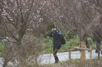 圖片說(shuō)明:今冬梅花早早綻放,引來(lái)市民欣喜拍攝。記者海沙爾攝