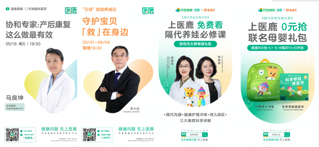 除了詳實(shí)的直播課程,從兒童節至“天貓618”活動(dòng)期間,醫鹿App還有兒科免費義診、三甲兒科醫生24小時(shí)咨詢(xún)服務(wù),以及醫鹿與金寶貝合作定制的《科學(xué)帶娃綠寶書(shū)》、少兒保險大禮包等多重福利也同步上線(xiàn),方便眾多家庭輕松獲取養娃知識。