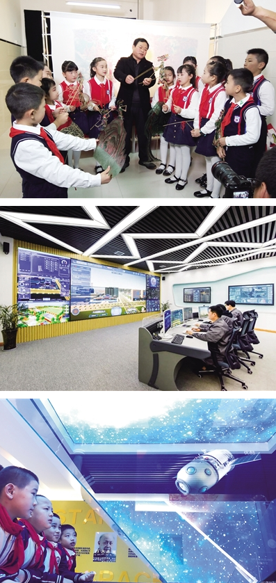 走進(jìn)該校航天科技體驗館,全息投影讓人不禁眼前一亮,仿佛置身宇宙,探尋宇宙的奧秘,里面紀錄了太陽(yáng)系、人造衛星、中國航天里程碑事件等信息,讓同學(xué)們身臨其境、趣味十足地學(xué)習航天知識。據航天城第四小學(xué)校長(cháng)楊勇介紹,學(xué)校積極對接區域智慧教育系統,堅持“深化應用,融合創(chuàng )新”,根據學(xué)校的特色來(lái)建設智慧校園。目前正在開(kāi)發(fā)當中的智慧校園平臺,會(huì )將評價(jià)的積分系統與虛擬云幣銀行機制結合,做到可兌換可交易,利用校園云幣記錄學(xué)生成長(cháng),進(jìn)行在線(xiàn)實(shí)時(shí)評價(jià),既能達到激勵學(xué)生和發(fā)展財經(jīng)素養的效果,又能實(shí)現學(xué)生生涯規劃大數據分析。