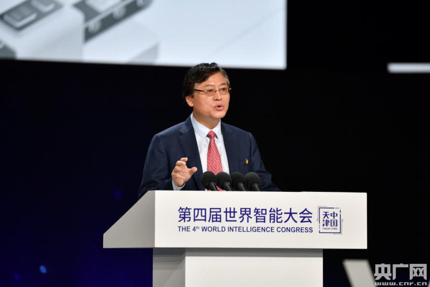 聯(lián)想集團董事長(cháng)兼CEO楊元慶在開(kāi)幕式上發(fā)表主題演講(央廣網(wǎng)記者 劉陽(yáng) 攝)