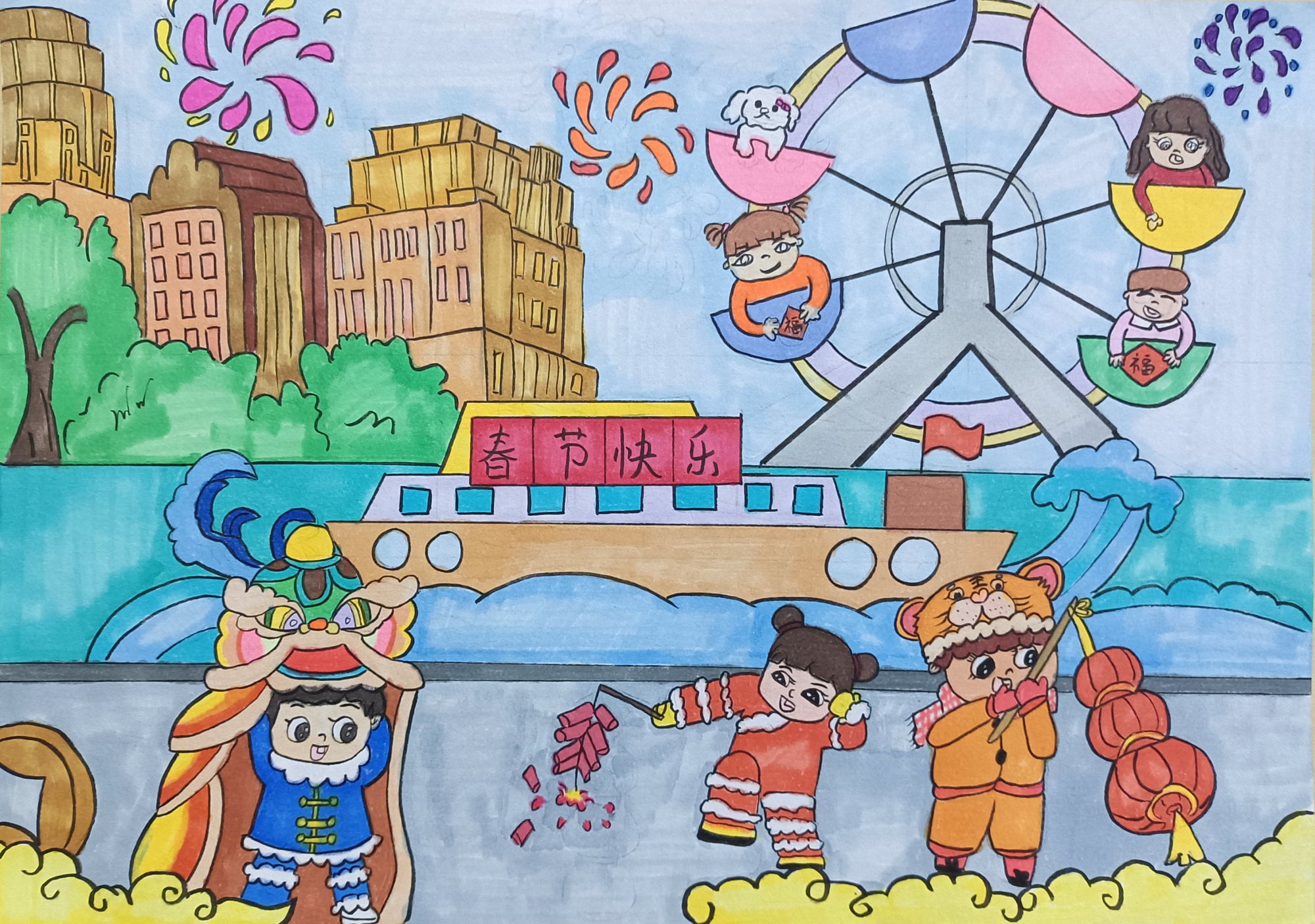 天津市北辰區西堤頭小學(xué)——《海河韻味,虎年大吉》