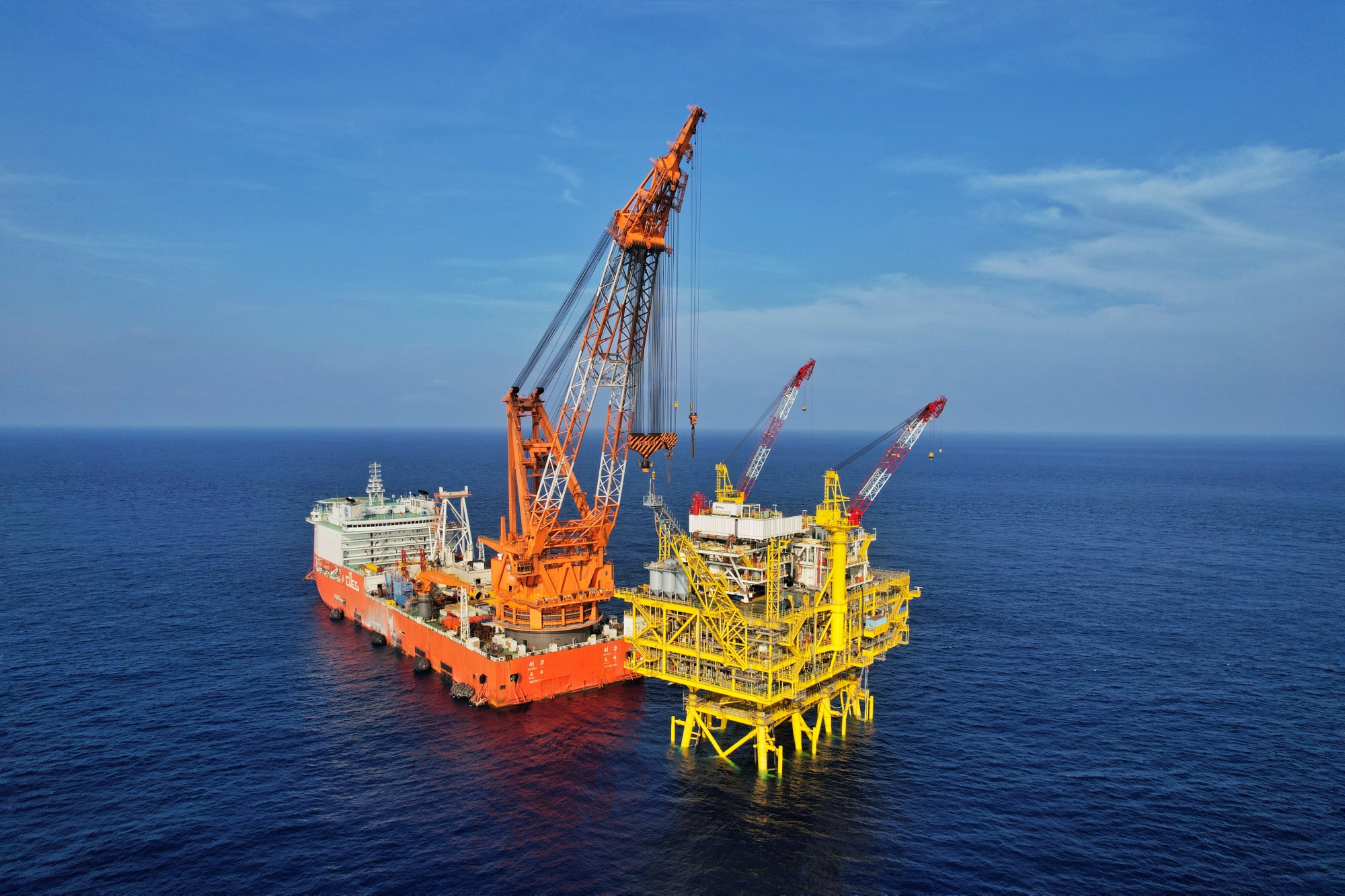 亞洲第一深水導管架平臺“;惶枴 建設完工