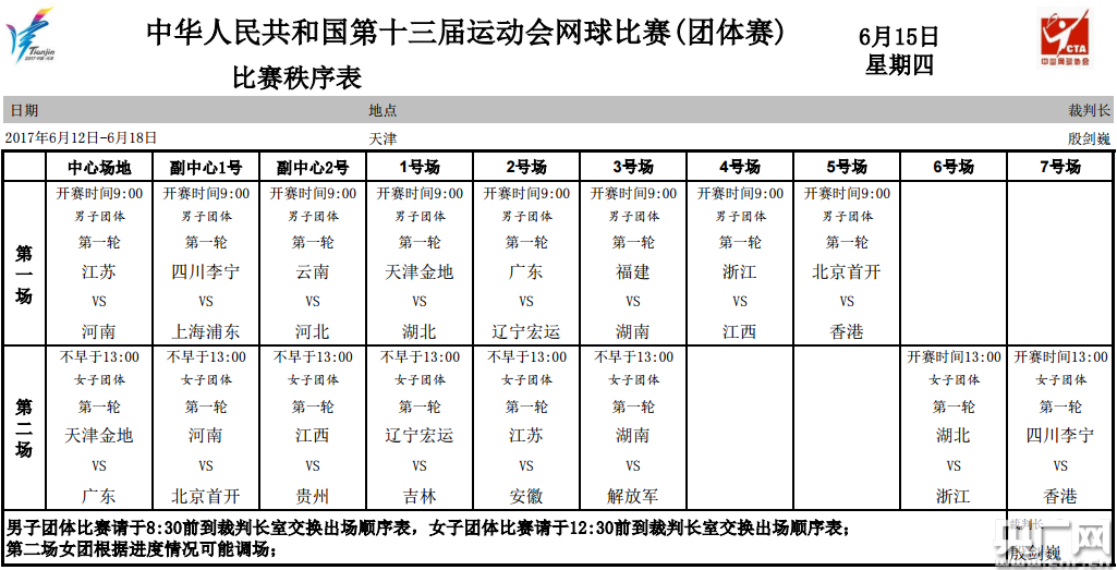 第十三屆全運會(huì )網(wǎng)球團體第二階段比賽順序已定,16支男子團體和16支女子團體隊伍備戰即將到來(lái)的第二階段比賽。