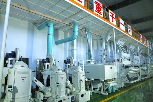 內蒙古華貿食品科技有限公司大米加工車(chē)間的智能生產(chǎn)線(xiàn)。何娜 攝
