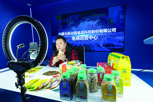 走進(jìn)內蒙古新谷園食品科技股份有限公司電商運營(yíng)中心,記者看到主播正在向屏幕前的觀(guān)眾介紹公司的主要產(chǎn)品——預熟雜糧。